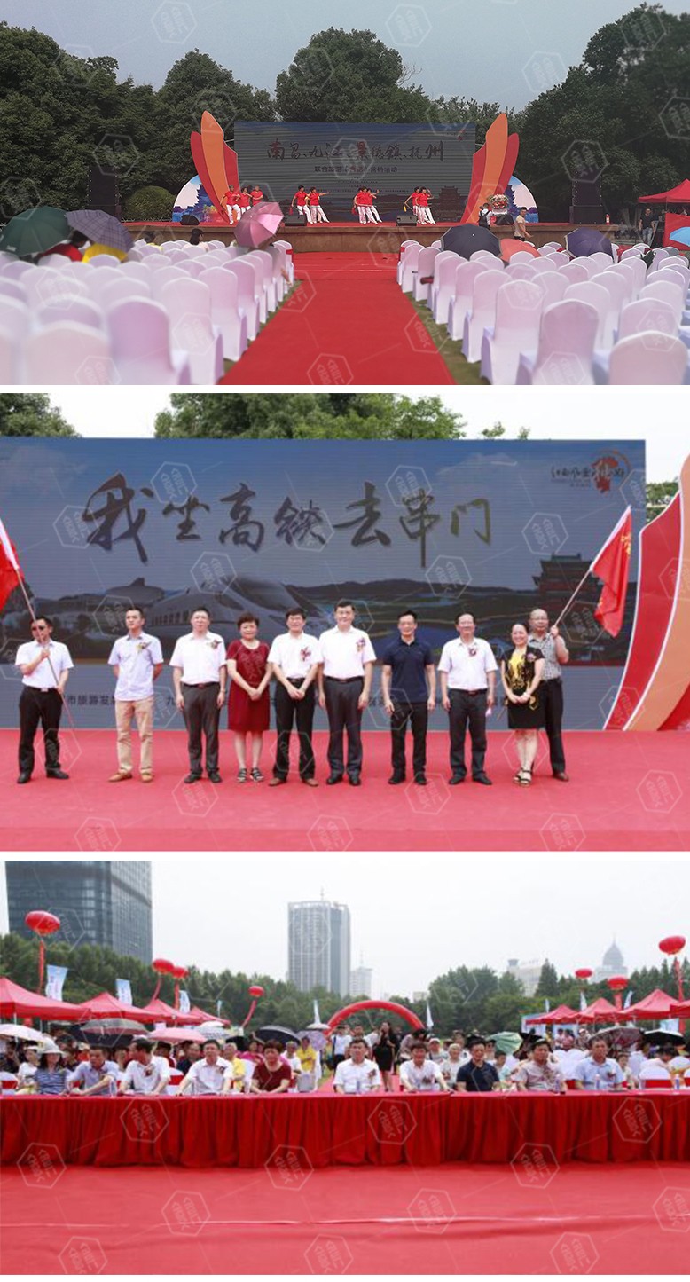 6月26日上午,杏花公园群众广场彩旗飘扬,人头攒动,由江西省旅游委员会、南昌市人民政府主办,南昌、九江、景德镇、抚州市旅游委员会协办的“坐着高铁去串门”旅游联合营销热烈进行。南昌市人民政府副市长凌卫、副秘书长万里菲,南昌市旅游委主任陈清华,合肥市人民政府副秘书长谢军,合肥市旅游局局长完颜绍建等领导出席活动。