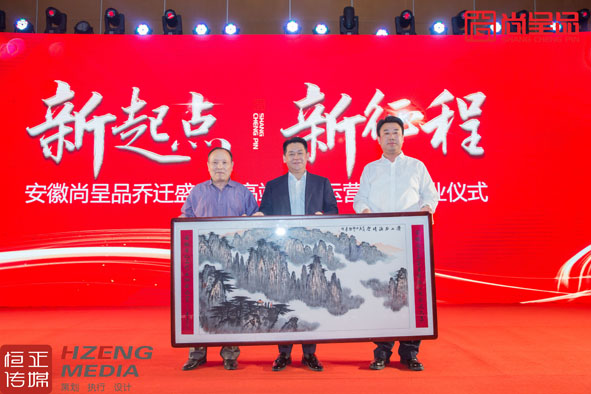 新起点 新征程 安徽尚呈品乔迁盛典暨高端食品运营中心开业仪式 于2019年5月6日在合肥市五星级酒店元一希尔顿酒店2楼宴会厅盛典举办!现场参会有亚东会安徽分会/合肥市东至商会/合肥市池州商会/安徽服装行业协会/安徽礼品行业协会/安徽百货供应商协会/安徽厨具行业协会/中国礼品联合精英会等。现场近400人见证此刻盛况!现场全场网络直播!现场直播