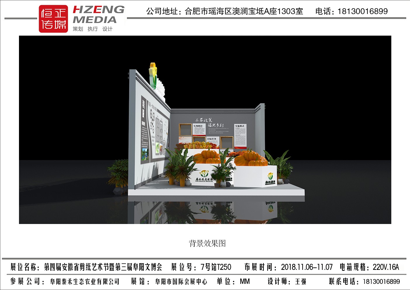 阜阳泰禾生态农业展位由安徽恒正文化传媒有限公司设计制作安装。