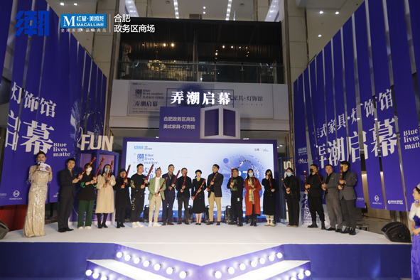 美式家具·灯饰馆弄潮启幕环节,美克·美家总经理朱兆峰、景程家居总经理张英杰、格尼家居总经理张学聪、荷玛软装设计总经理邱雨濛、东方一品灯饰总经理金华杰、阳光一号总经理徐学永、OPPLE总经理窦仁菊、美时艾菲特总经理陈鹏宇、想天总经理马元信、红星美凯龙合肥政务区卖场总经理陈浩、红星美凯龙合肥政务区卖场常务副总经理蒋国栋、红星美凯龙合肥政务区卖场经理宋梦龙、红星美凯龙合肥政务区卖场经理丁大勇登上舞台,撒下对红星美凯龙合肥政务区卖场美式家具·灯饰馆弄潮启幕的祝福,共同开启了这一历史性时刻。