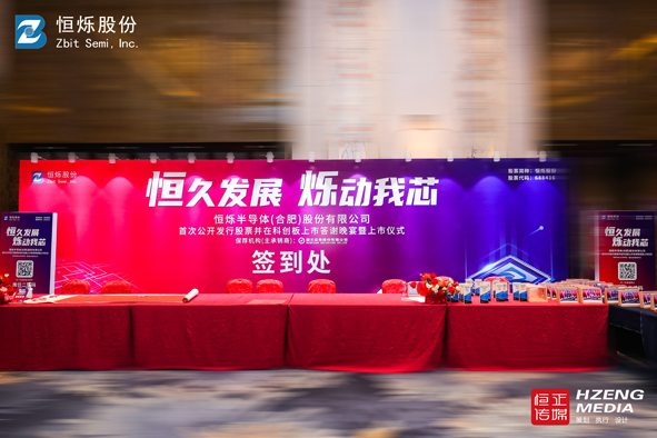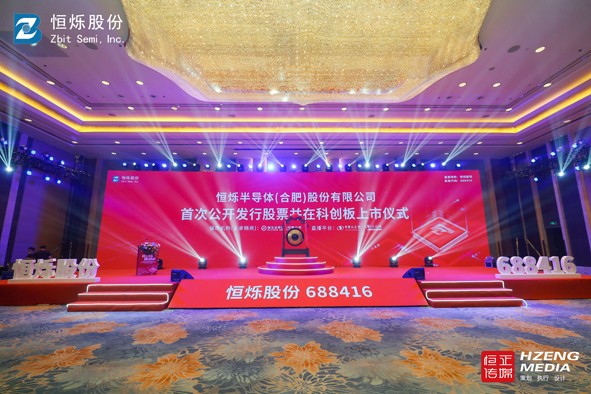 恒烁半导体(合肥)股份有限公司首次公开发行股票并在科创板上市仪式在合肥香格里拉酒店举行;恒正传媒有幸为恒烁半导体(合肥)股份有限公司首次公开发行股票并在科创板上市仪式答谢晚宴暨上市仪式提供全程活动策划、流程画面设计、舞美搭建执行、现场执行等一站式服务。恒正传媒成为安徽首家策划、设计、执行上市公司上市仪式的传媒公司,打破了北上广深对安徽省上市公司上市仪式的活动垄断地位,成就恒正传媒品牌一个里程碑。恒正传媒为恒烁半导体专门定制一整套上市股票看盘系统。恒正传媒此次上市仪式活动得到恒烁半导体所有领导的夸赞。非常感谢恒烁半导体吕董、周总、陈总.....及相关部门领导的信任和认可。